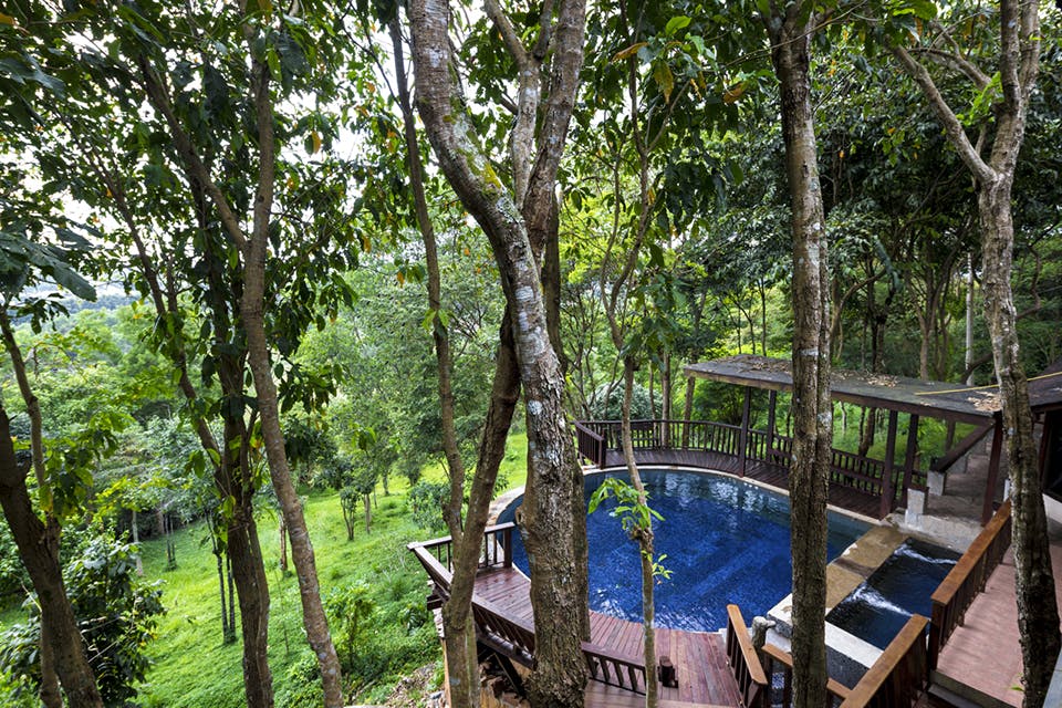 This stunning 3-storey timber house is located in the shade of a leafy timberland on a little mountain cliff. With 9 rooms, a meeting room, and a pool attached to it, the Sunset Terrace House is at the center of the villa complex of Village Farm. There is a shared lobby room where you can listen to music or watch the sunset on the main floor. A poolside terrace, open fitness alley and spa are also close by. Staying in this house is the perfect way to feel like you are back in touch with nature.