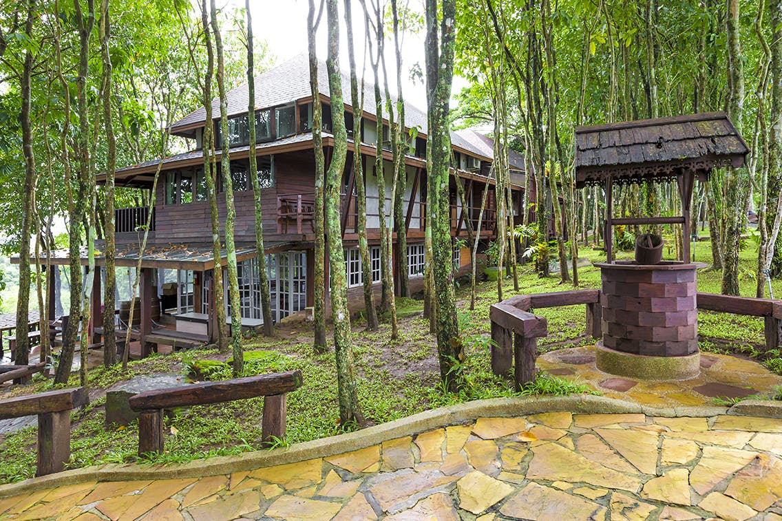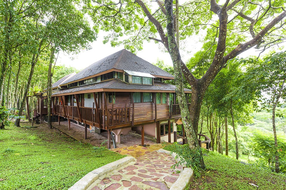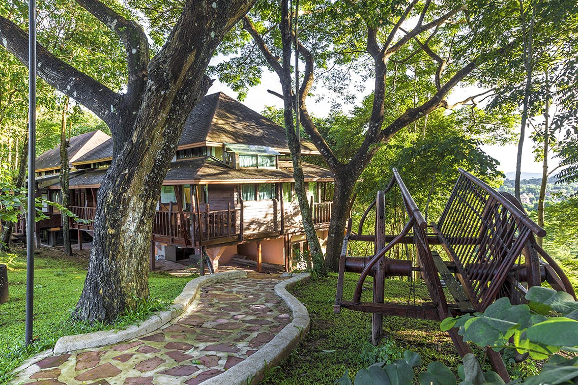 บ้านชมตะวันเป็นบ้านไม้ 3 ชั้นที่ตั้งอยู่ใต้เงแมกไม้อันร่มรื่น โดยฟากหนึ่งของบ้านเปิดโล่งให้เห็นวิวทิวทัศน์ของหน้าผา บ้านชมตะวันประกอบด้วยห้องพัก 9 ห้อง นอกจากนี้ยังมีห้องประชุมเอนกประสงค์อยู่ชั้นล่างของบ้าน ใกล้กับสระว่ายน้ำ ห้องล๊อบบี้ของบ้านที่ท่านจะสามารถอ่านหนังสือ หรือ ดูอาทิตย์ยามอัสดงได้ ณ ชั้น 2 ของบ้าน